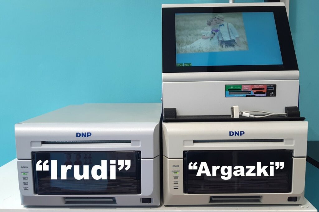 “Argazki” fue la primera. Está conmigo desde el principio de los tiempos. Es una DNP DS620 que nos permite imprimir al instante en 9×13, 10×10, 10×15,13×13, 13×18, 15×15, 15×20 y panorámicas 15×35 y 15×51. Imprime en brillo, mate o lustre sin cambiar la bobina, ahorrando así mucho tiempo.